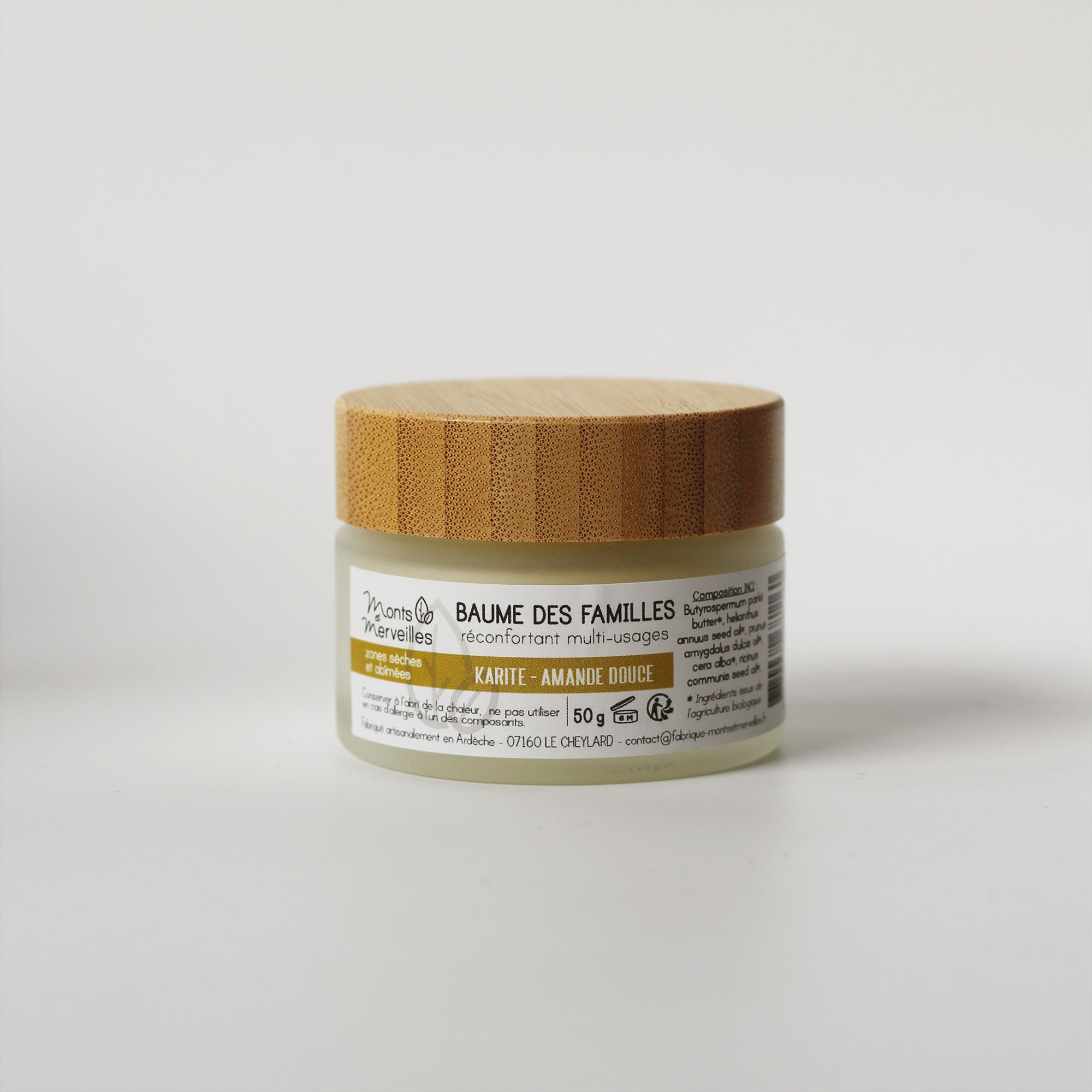 - Huile d’amande douce : reine des huiles végétales, l’huile d’amande douce est reconnue pour son action nourrissante et adoucissante sur les peaux sèches et éprouvées.